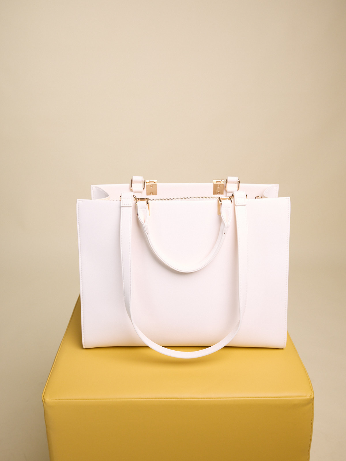 BORSA TOTE GRANDE CON CUCITURE IN CONTRASTO DI COLORE DOPPIA TRACOLLA E SCOMPARTO INTERNO CON ZIP Dimensioni: L 35 cm × H 27 cm × P 15 cm