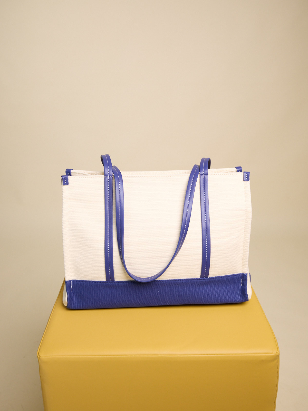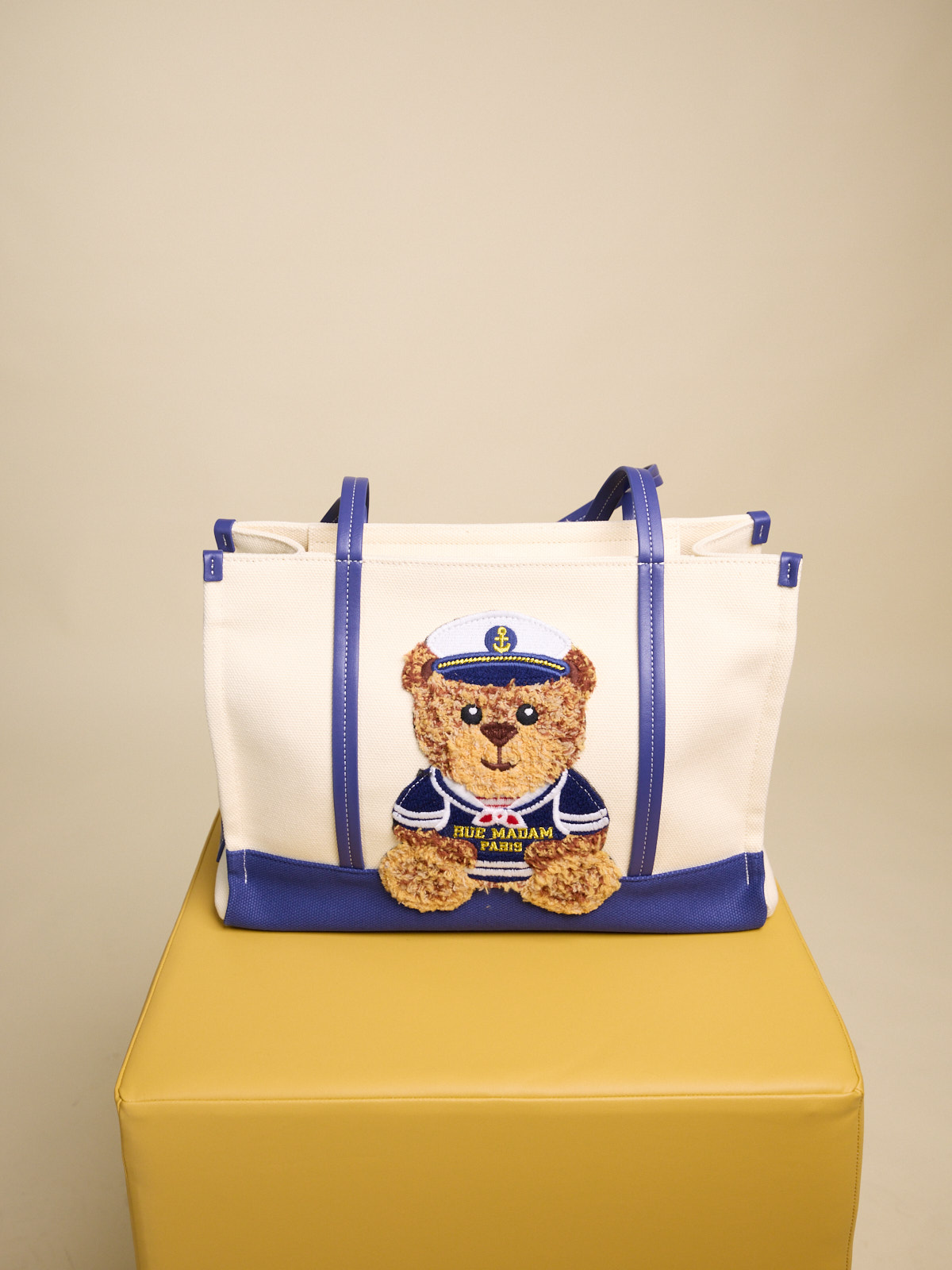 BORSA SHOPPING IN CANVAS CON MANICI IN ECOPELLE E ORSETTO RICAMATO EFFETTO PELUCHE CHIUSURA CON ZIP CENTRALE Dimensioni L 36 x H 27 x P 15 cm