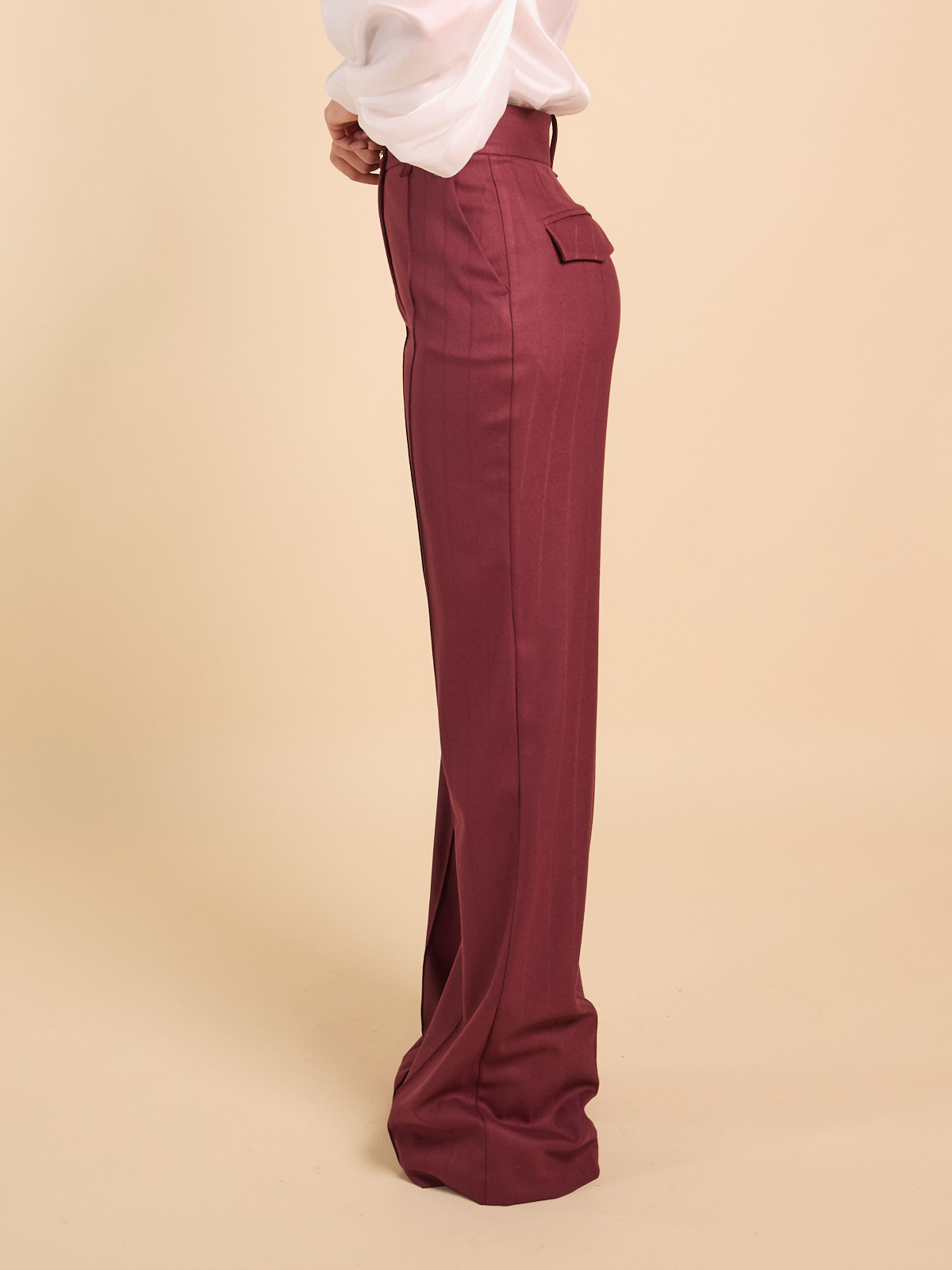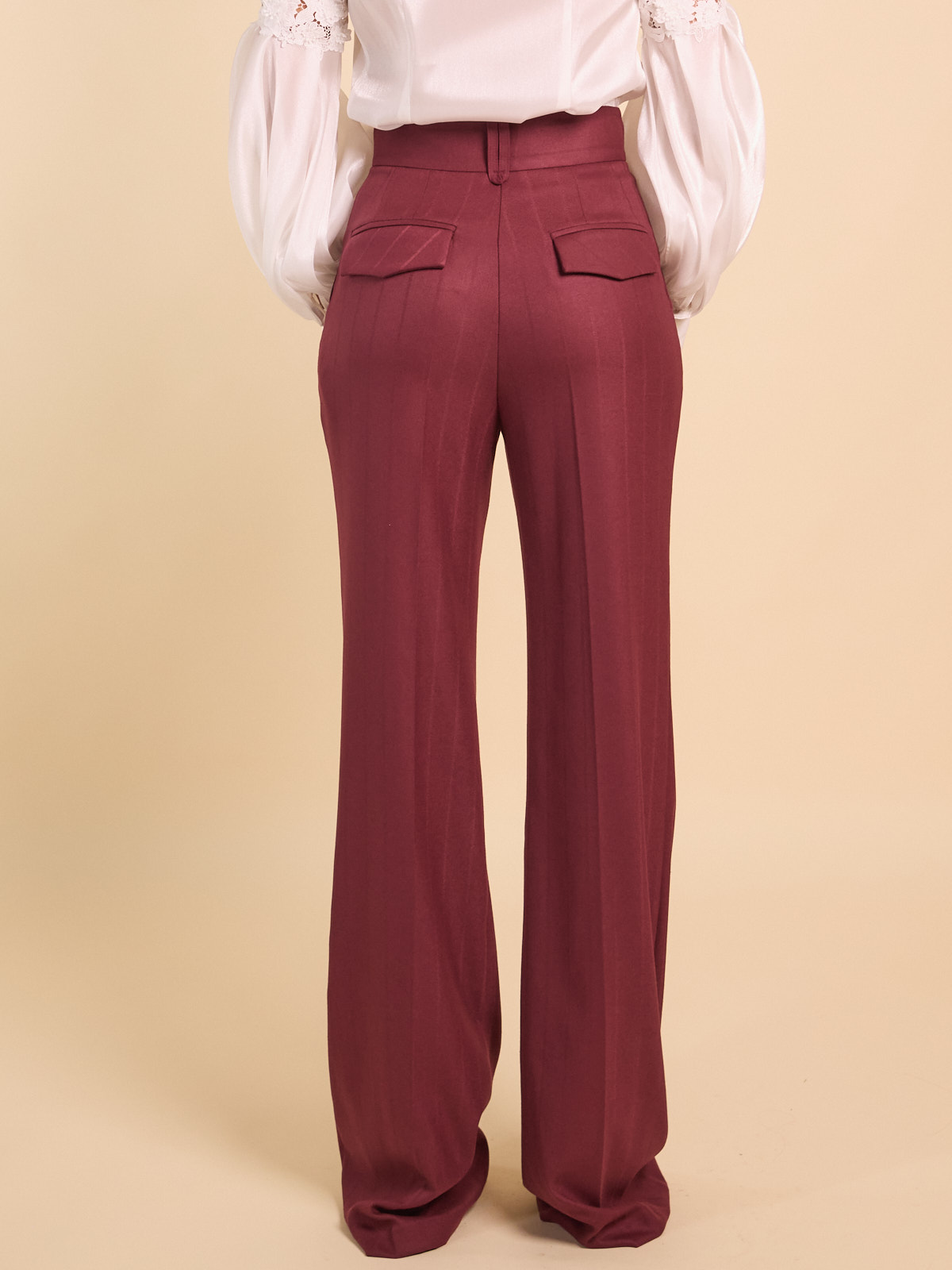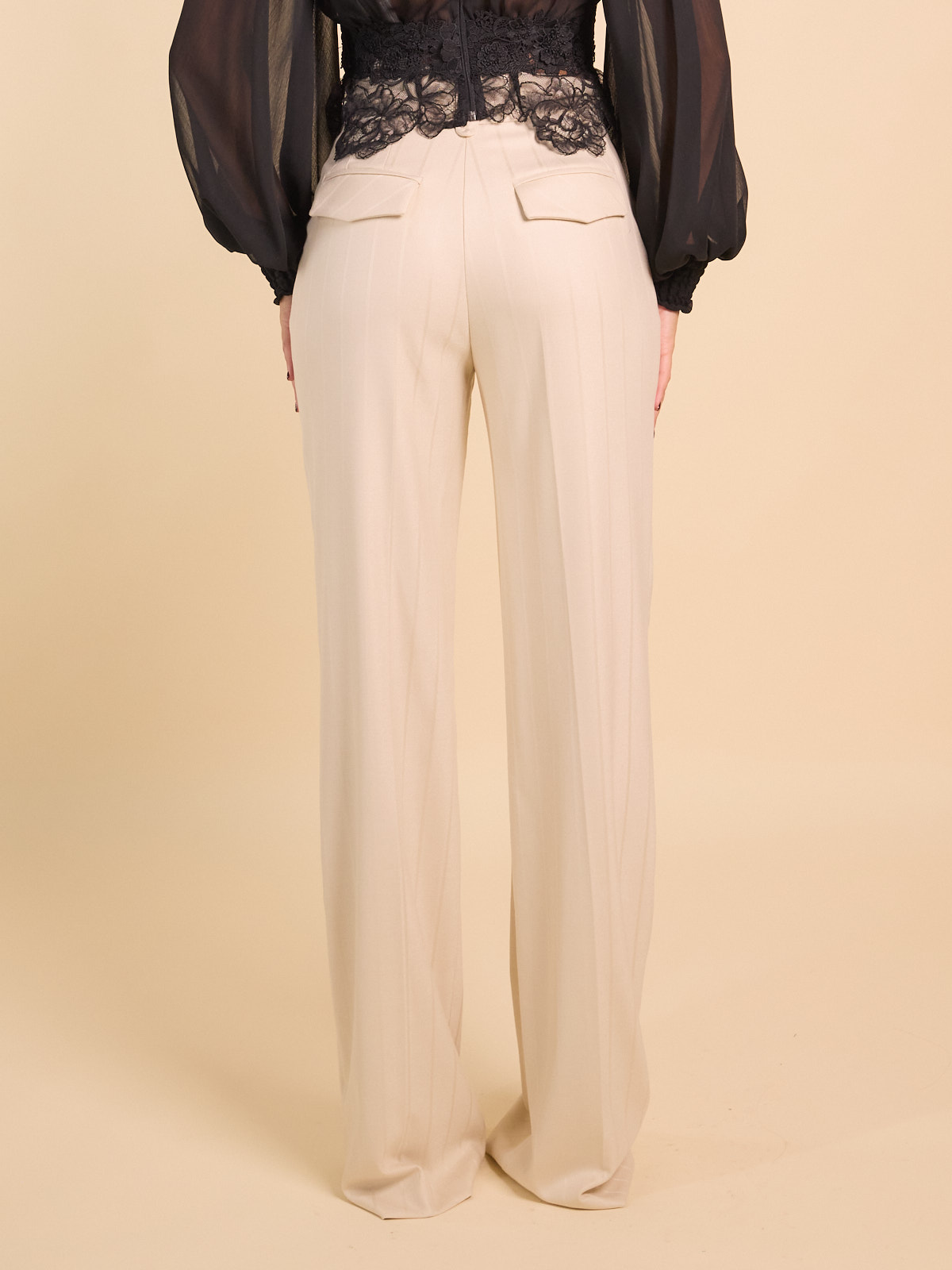 PANTALONE PALAZZO GESSATI CON RIGA TONO SU TONO TASCHE A FILETTO E PATTINE SUL RETRO